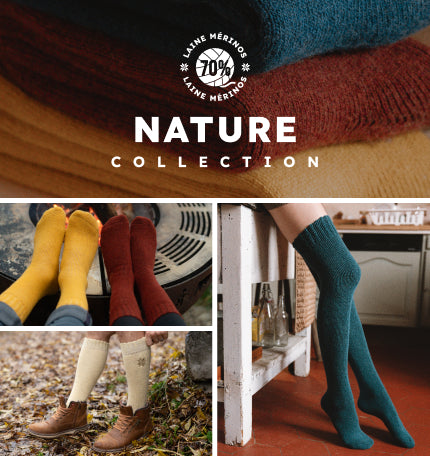 Nos chaussettes de la Nature Collection sont composées à 70 % de laine mérinos, ce qui offre un confort et une durabilité exceptionnels.